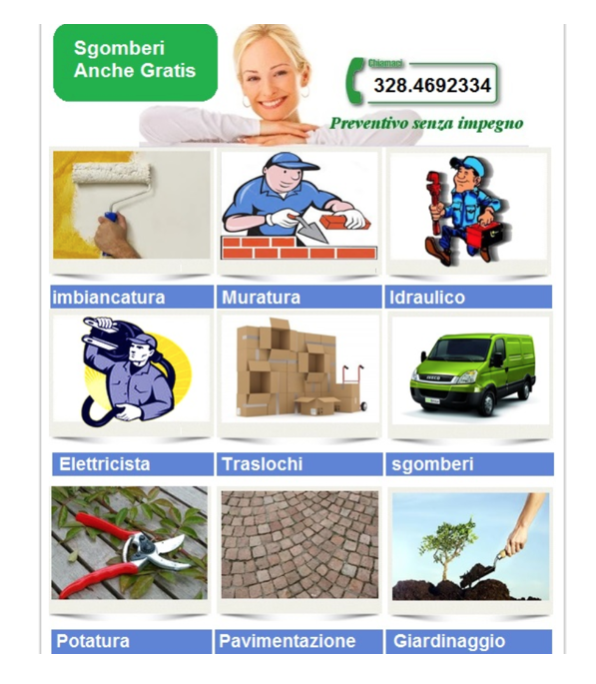 CONFRONTATE I NOSTRI PREZZI!!!ABBIAMO I PREZZI PIU BASSI DI TUTTA LA PROVINCIA DI SALERNO!E INOLTRE LAVORIAMO PURE GRATIS! ABBIAMO EFFETTUATO OLTRE 70 SGOBERI ASSOLUTAMENTE GRATIS!Offriamo servi